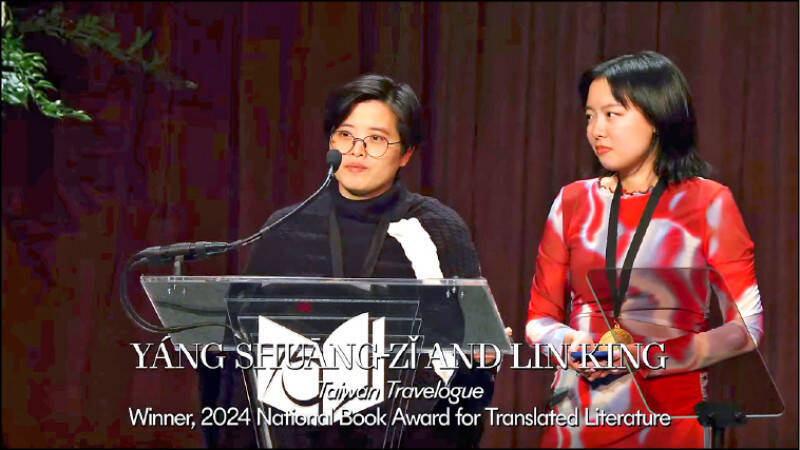 台灣作家楊双子(左)創作、台灣譯者金翎(右)翻譯的《臺灣漫遊錄》奪得第75屆美國國家圖書獎翻譯文學類大獎。(圖片擷取自美國國家書卷獎官網)
