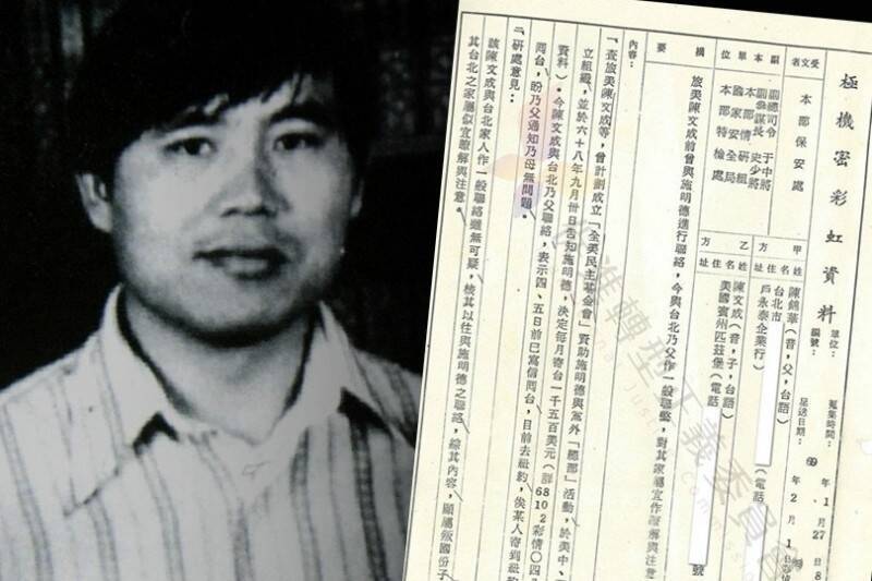 促轉會2020年揭開警備總司令部當年監聽陳文成動態行蹤的「彩虹資料」。(資料照,本報合成)