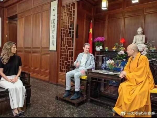 去年九月,阿薩德夫婦參訪了靈隱寺。千年古剎打破慣例,不僅鋪設紅地毯,還打開正門迎接這位獨裁者。(取自貼文)