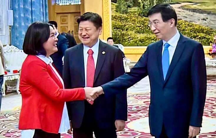 國民黨立法院黨團總召傅崐萁一行,4月與中國全國政協主席王滬寧會面。(取自貼文)