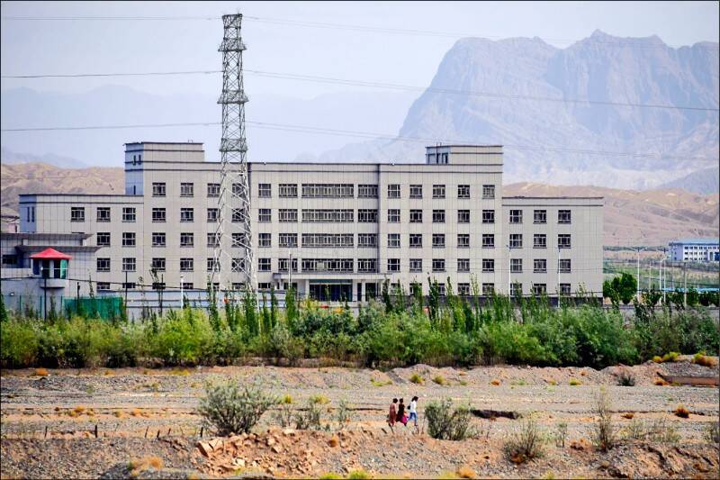這棟建築位於中國新疆維吾爾自治區克孜勒蘇柯爾克孜自治州阿圖什市,據信為中國政府在新疆大量設立「再教育營」的地點之一。(法新社檔案照)