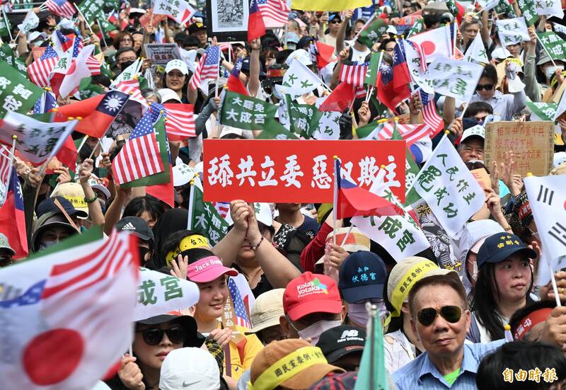 今天(0419)上街頭的群眾來自全台各地,而且都是自發前往,並非政黨動員。可見藍白過去一年多來的舔共賣台行為,已經徹底激發了台灣社會空前的危機感,讓大家願意暫時放下歧見,一起守護這片得來不易的民主淨土。今天的活動也顯示了台灣公民社會的可貴,在台灣面臨危急存亡的關鍵時刻發揮出無比的韌性,堅決以行動對中共以及立法院中的中共內應說「不」。