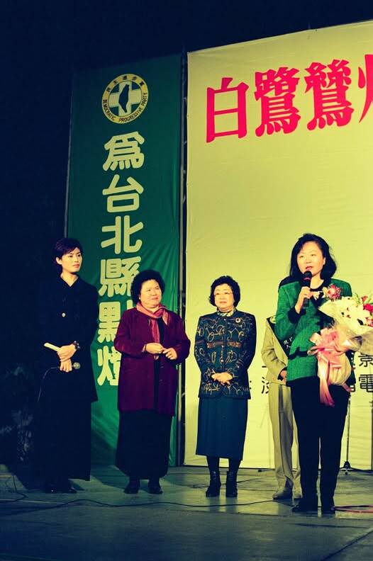 1998年1月,盧修一生病時,在台北縣舉辦為盧修一祈福「白鷺鷥燭光晚會」左起鄭麗文、陳菊、范巽綠、陳郁秀。(取自貼文)