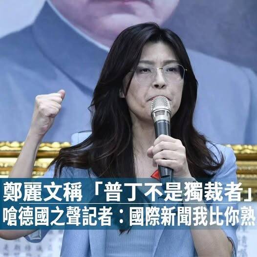 鄭麗文最近接受德國之聲訪問,普廷並不是獨裁者,他是民主選出來的領袖。(取自貼文)