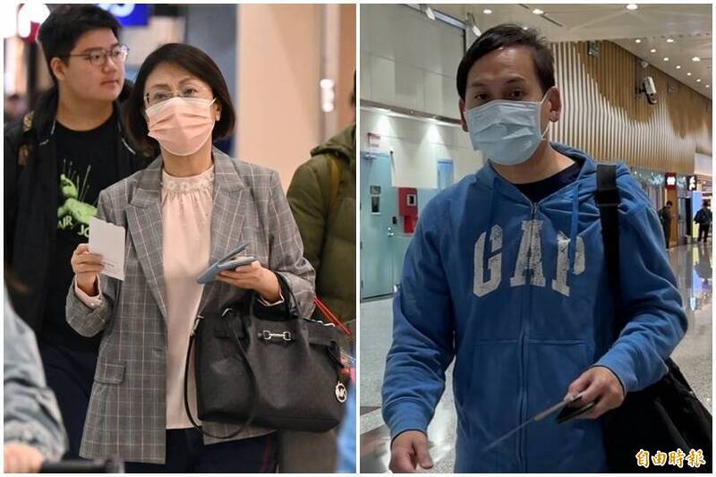 國民黨立委翁曉玲(左)和葉元之(右)等人,在北捷連續攻擊事件隔天(1220),突然分批戴著口罩,出境前往中國廈門。(資料照,本報合成)