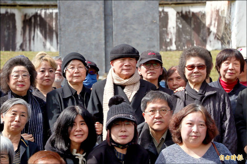 2023年「林宅血案」於慈林紀念林園舉辦追思會,會後與會者合影,監委范巽綠(中排左起)、林義雄夫人方素敏、民進黨前主席林義雄、前監察院長陳菊。(資料照)