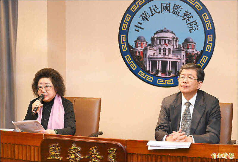 監委蔡崇義(右)與范巽綠(左)於2023年召開記者會,提出「林宅血案結案調查報告」。(資料照)