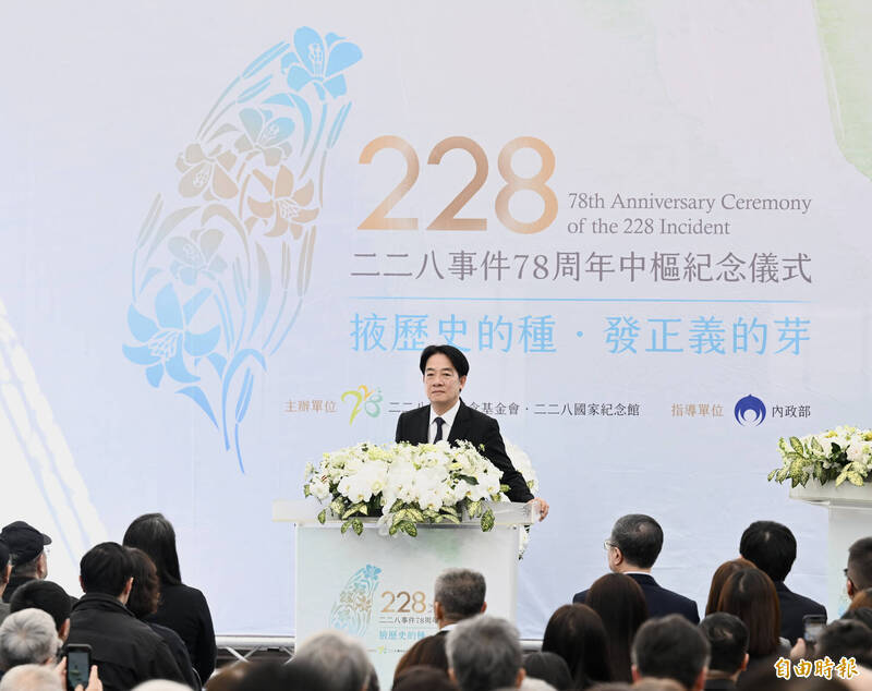 總統賴清德於2025年以總統身份出席「228事件78周年中樞紀念儀式」,指林宅血案政府難辭其咎,他要代表政府道歉。(資料照)