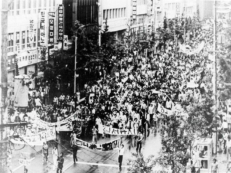 台灣沒有流血代價就成功完成民主化,但是這個過程與同時期的韓國或者許多東歐國家相比,最大的不同在於台灣的舊政權沒有崩潰。圖為韓國1980年5月光州事件。(圖取自南韓國家檔案局)