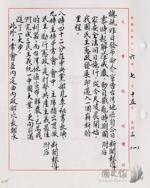 1980年台灣仍在戒嚴,離解嚴還很遙遠,1987年1987年7月15日我國政府才宣布解除戒嚴。(資料照,國史館提供)